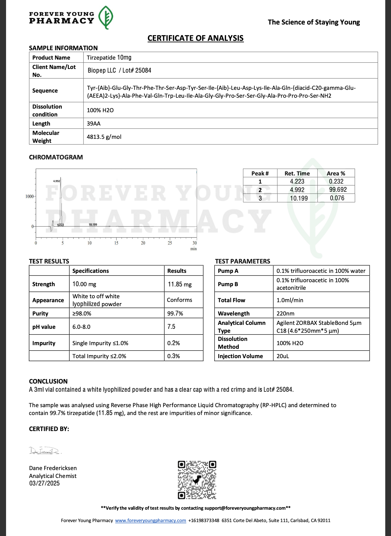 Tirzepatide 10 mg | Produced by BioPep LLC | Lot#25084